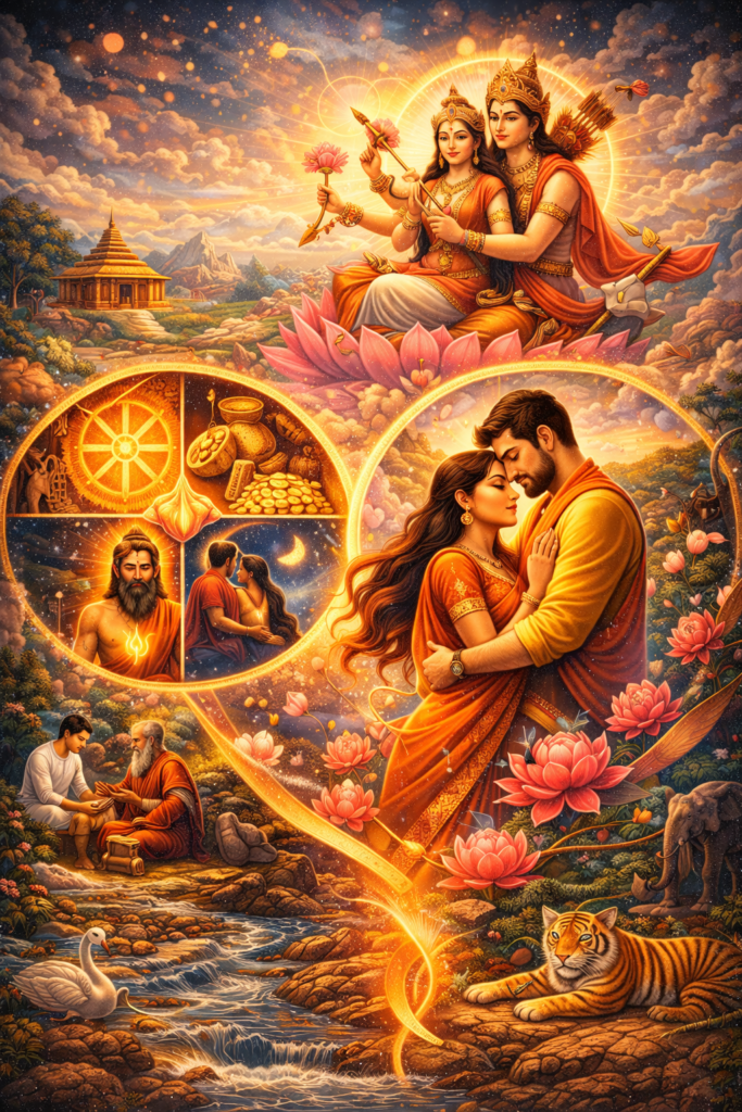 In the vast tapestry of Vedic wisdom, the concept of Kama holds a significant place. Often misunderstood as mere sensual pleasure, Kama encompasses the broader notion of desire and the pursuit of emotional, aesthetic, and sensual fulfillment. The Vedas provide profound insights on how to approach Kama in a manner that aligns with Dharma, the righteous path. Let us delve into the wisdom of the Vedas to understand the essence of Kama and its harmonious integration into a life guided by Dharma.